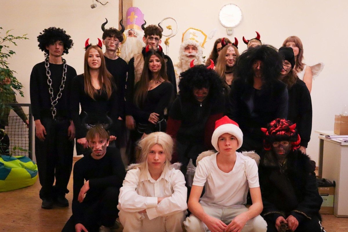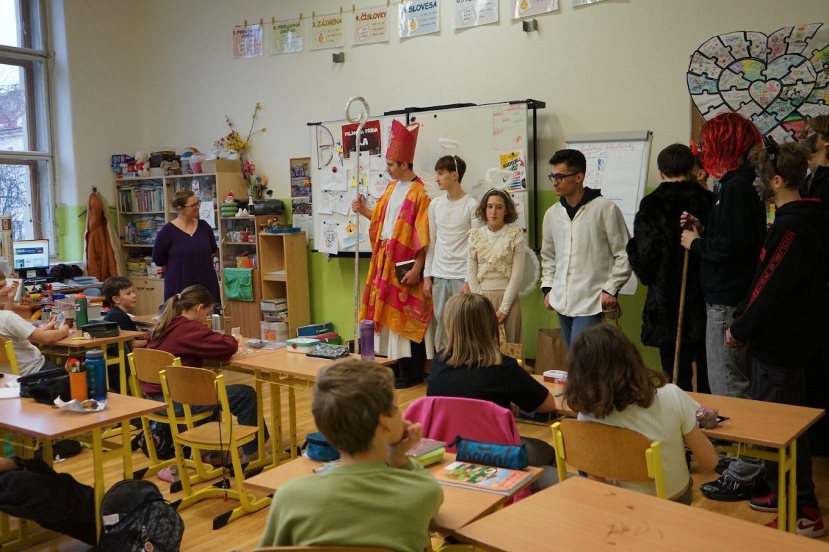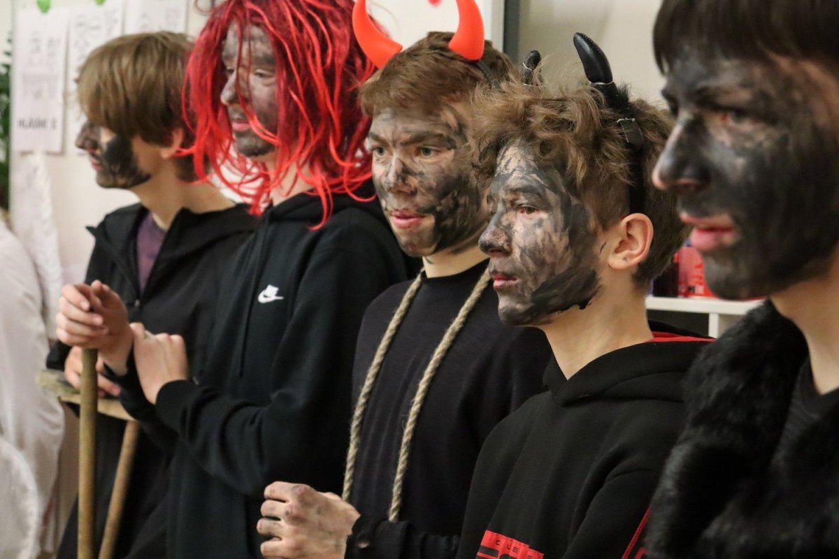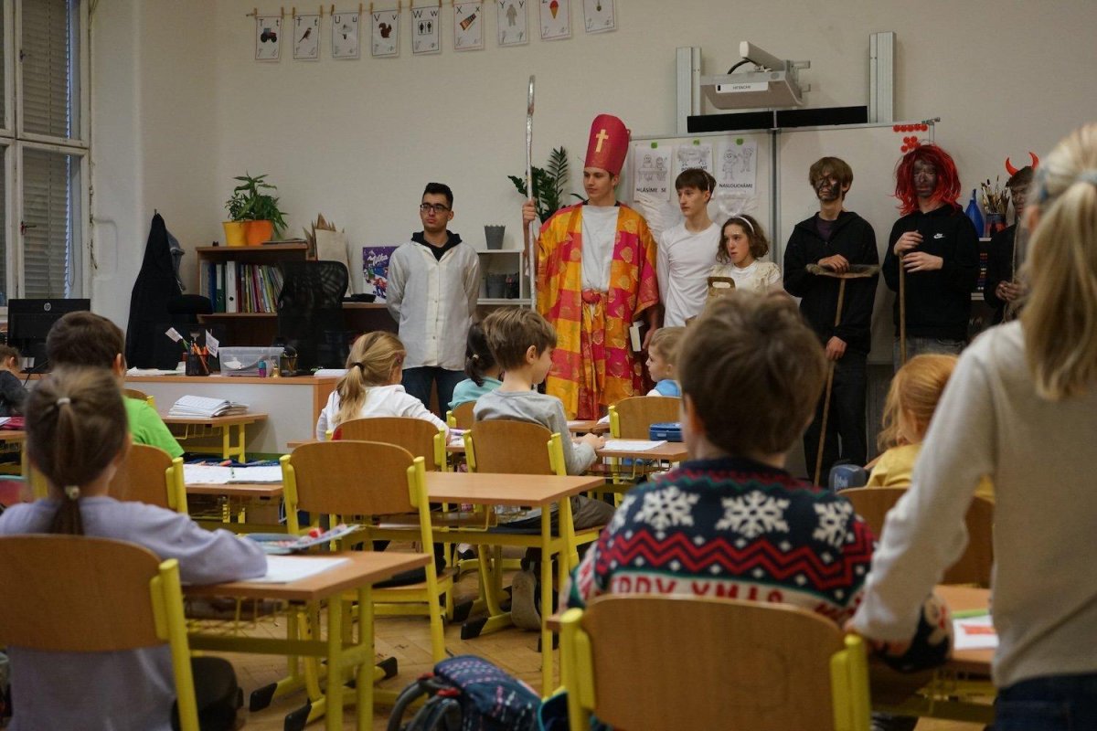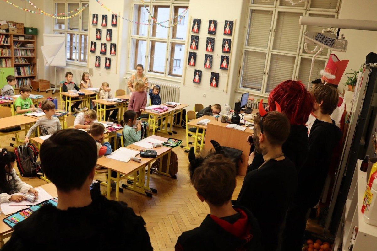 Letošní čerti uhlím rozhodně nešetřili. Podle naší školní tradice se deváťáci opět zhostili rolí Mikuláše, čertů a andělů. První tři páteční hodiny 5. prosince navštěvovali třídy prvního stupně a řádně potrestali či odměnili malé žáky.