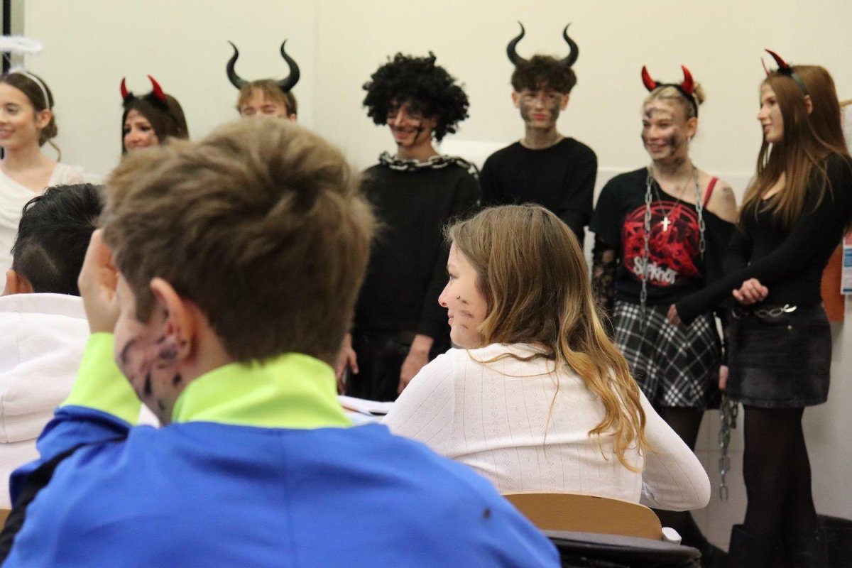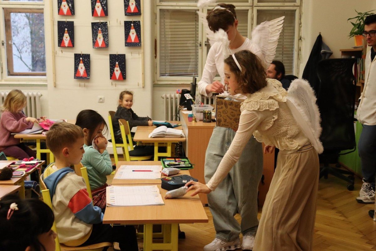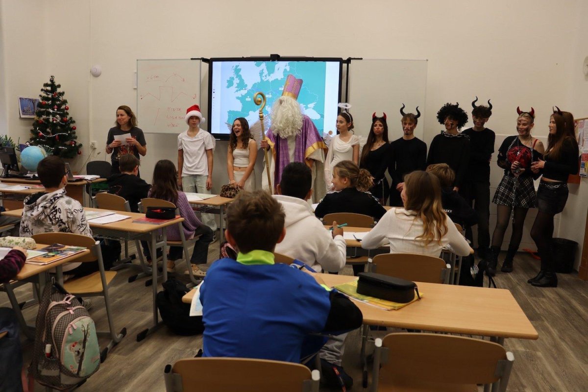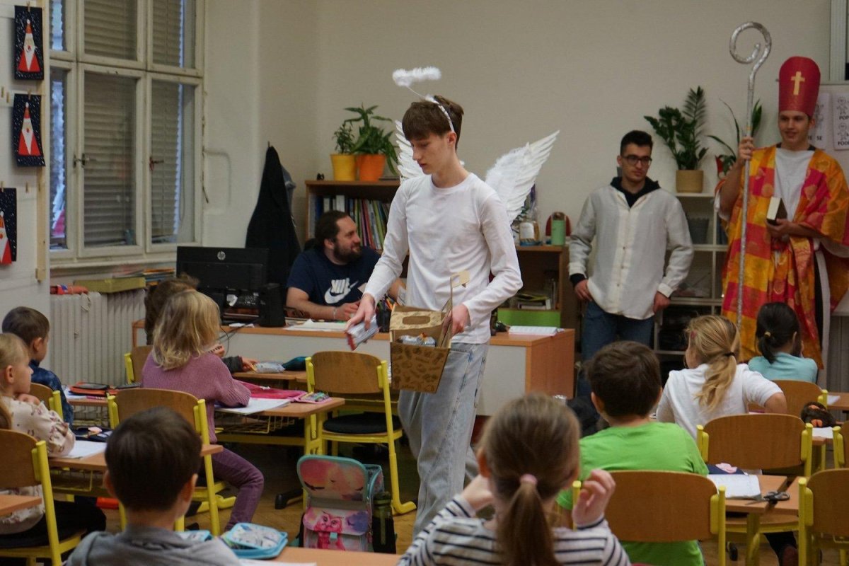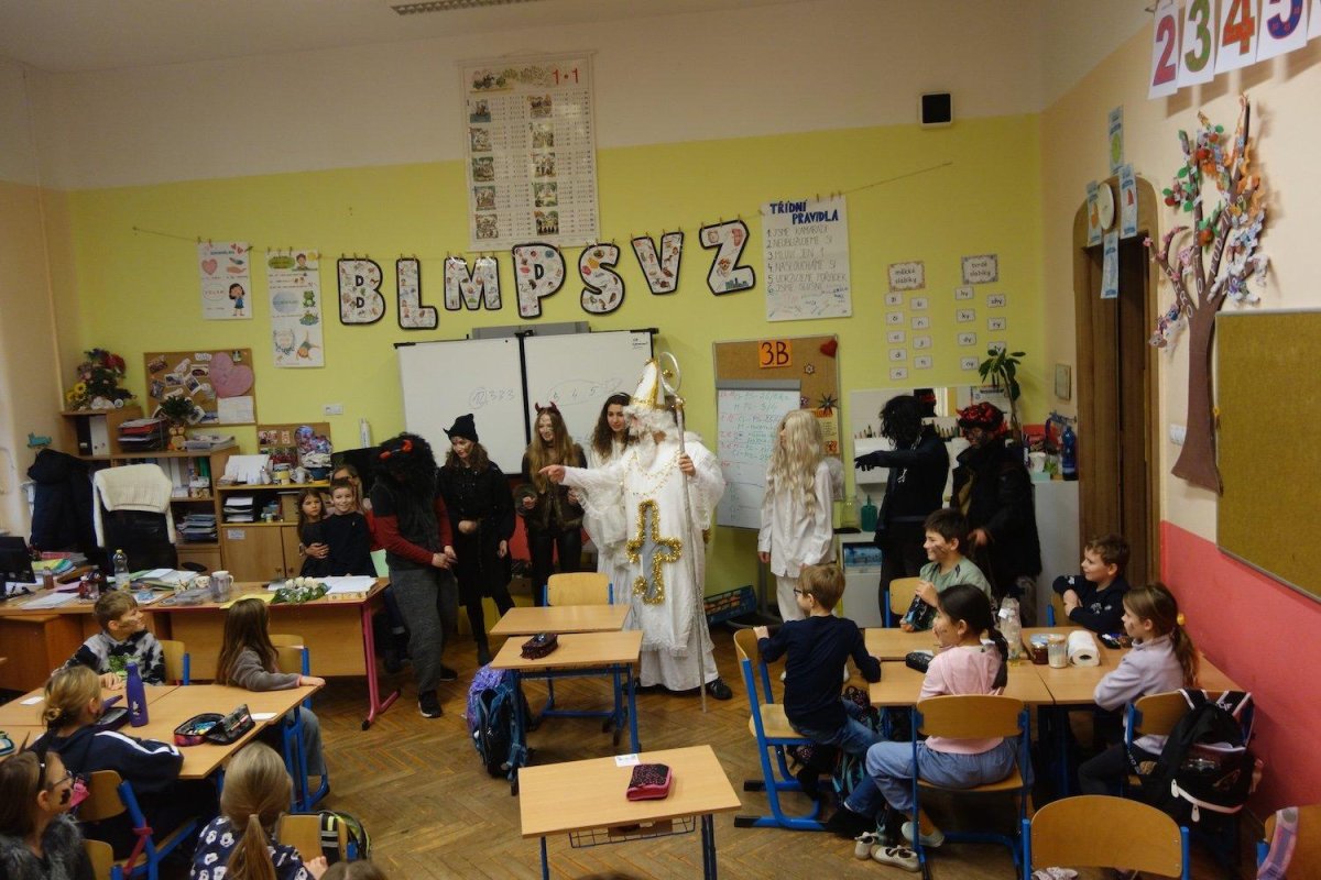 Letošní čerti uhlím rozhodně nešetřili. Podle naší školní tradice se deváťáci opět zhostili rolí Mikuláše, čertů a andělů. První tři páteční hodiny 5. prosince navštěvovali třídy prvního stupně a řádně potrestali či odměnili malé žáky.