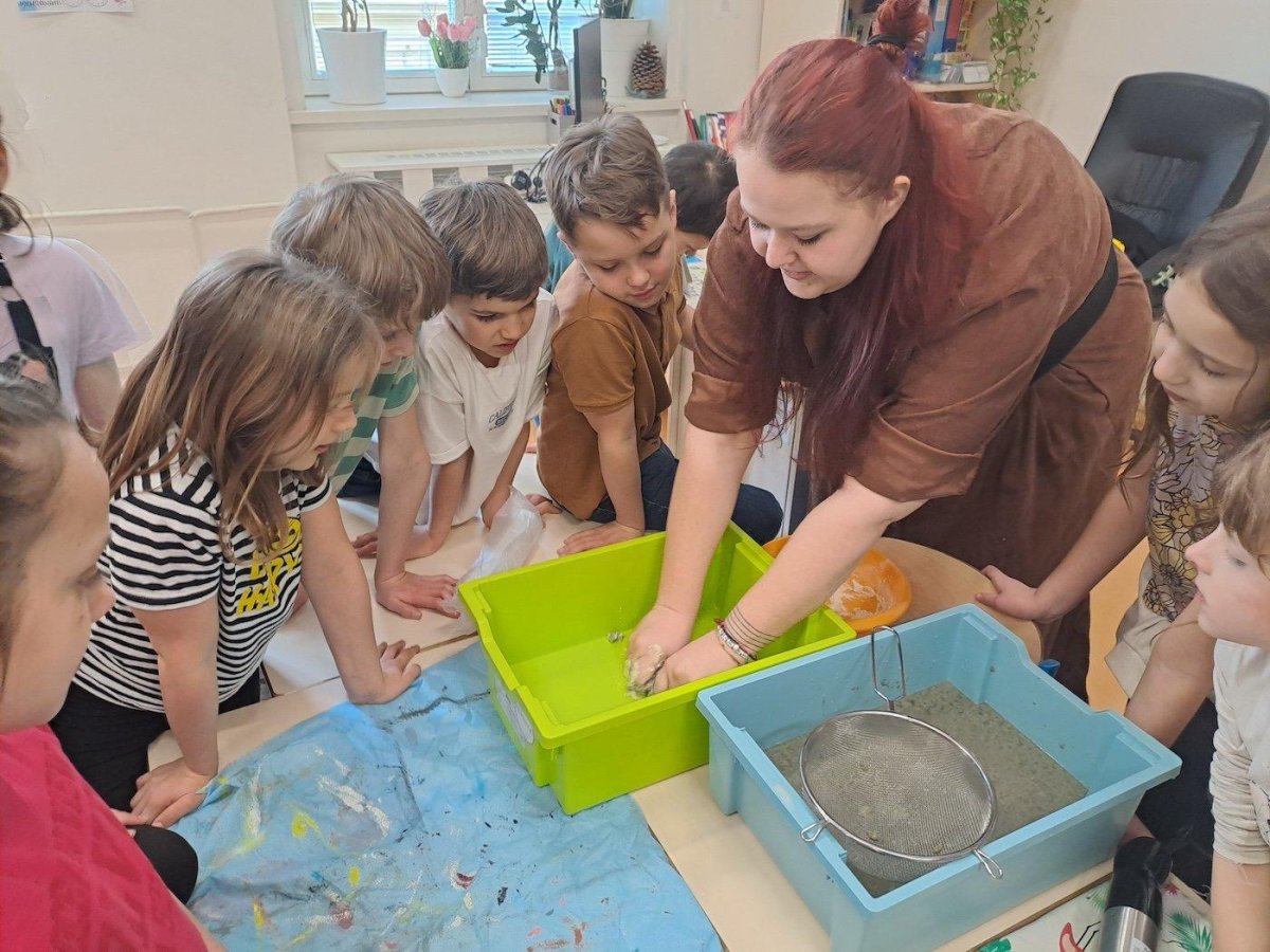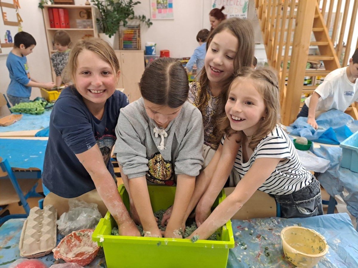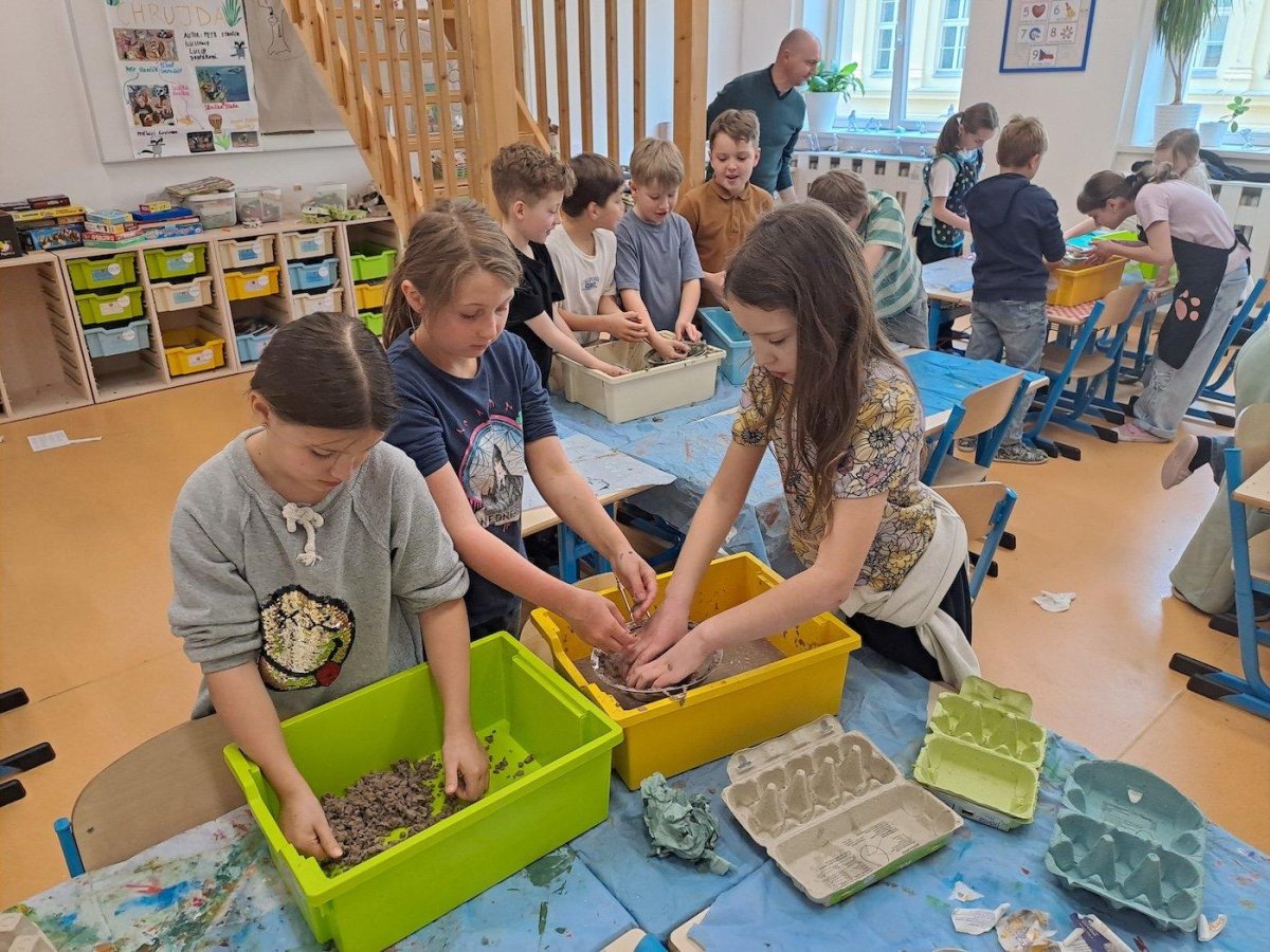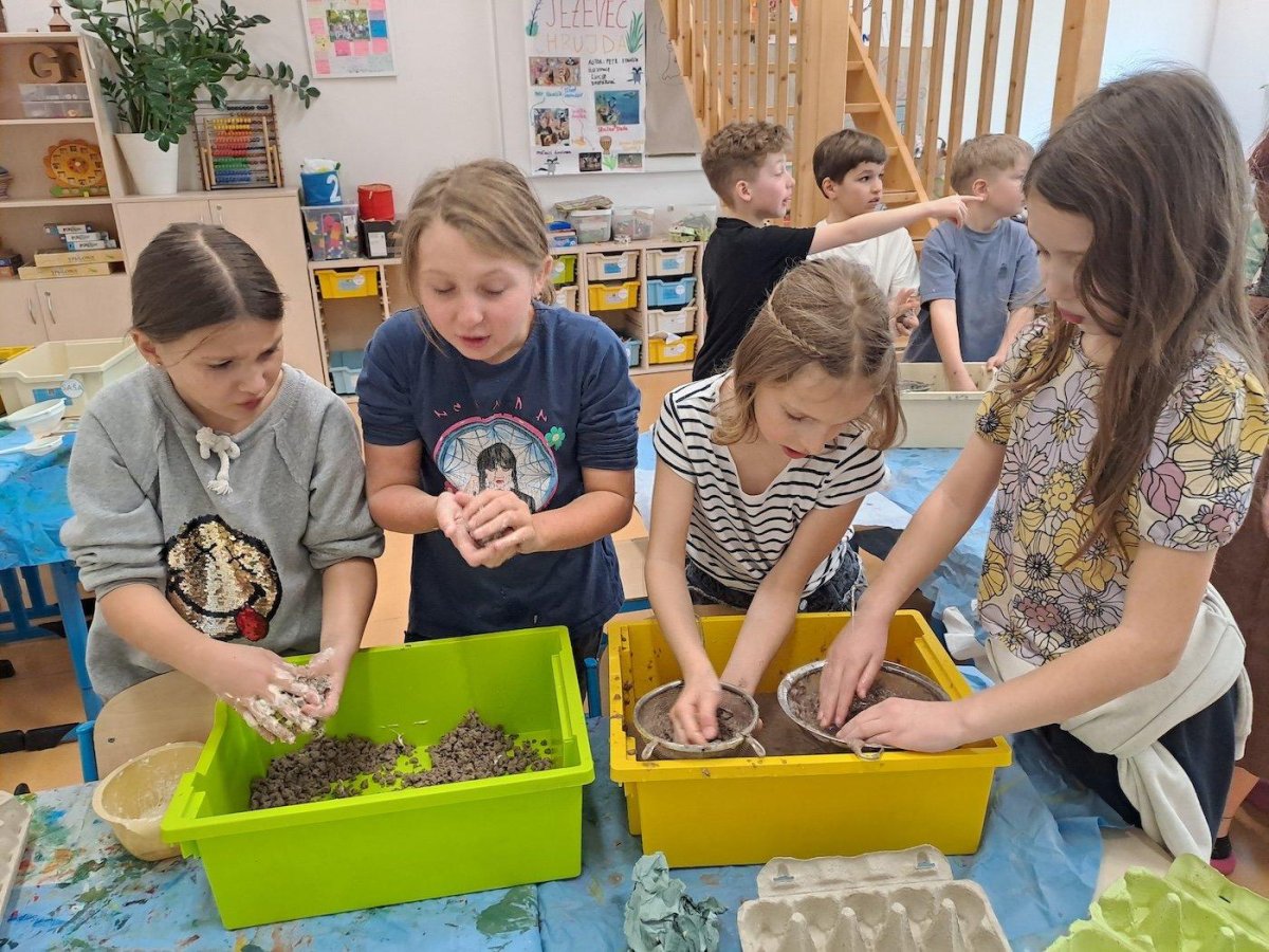 Tohle vyrábění pro nás vymyslela naše paní učitelka Alena Wernerová, kterou máme moc rádi a která má vždycky nějaký zajímavý nápad. Pokud byste chtěli vidět, co všechno se dá vykouzlit z papíru, vody, mouky a trochy fantazie, zastavte se 31. března 2026 na Lyčkově náměstí od 15:00 – 17:00 hod. Budeme tam naše misky prodávat!