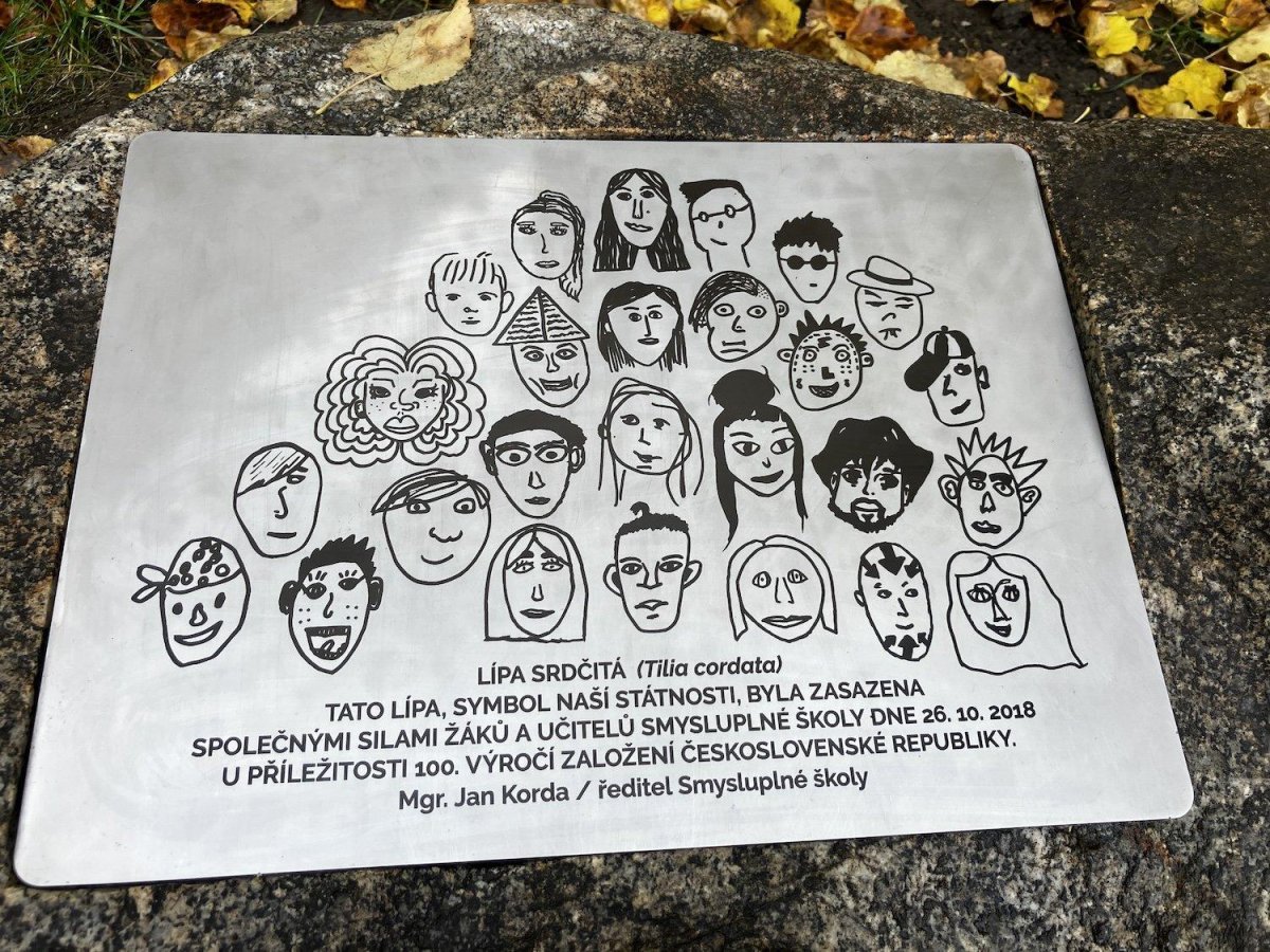 Na dvorku Lyčkárny stojí krásná lípa, která byla v roce 2018 zasazena ke stému výročí naší republiky. Jednotlivé třídy se střídaly po měsících celé tři roky v zalévání. Před lety padl slib, že pokud lípa přežije a děti se o ní budou starat, tak se k lípě přidá i pamětní kámen s deskou. To se tak i skutečně stalo, ovšem nebylo to tak jednoduché. Vyšel totiž až třetí pokus o realizaci. Pomohl k tomu Spolek rodičů. Kámen totiž, jak nám řekla paní ze spolku, koupili v Malešickém sběrném dvoře za 800 korun. Kámen byl potřeba dopravit a usadit. S výkopem pomohli silní chlapci z devátých tříd. Na výrobě pamětní desky se podílely samotné děti. V rámci výtvarné výchovy společnými silami namalovaly kresbu, která pamětní desku náležitě ozdobila. Rodiče, děti, návštěvníci, ale i kolemjdoucí si tak mohou připomínat, že společné úsilí se vyplatí.
