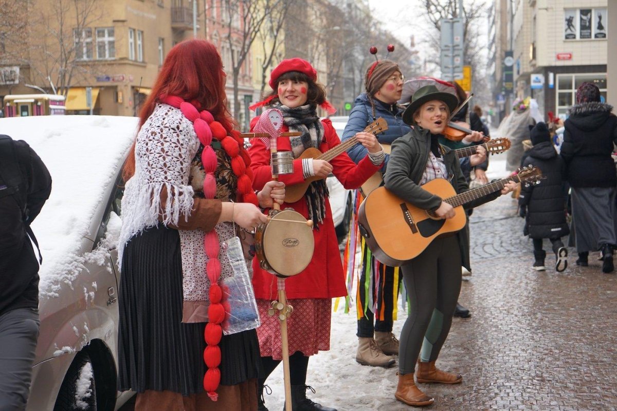Kreativita účastníků letos neznala mezí. Náměstí zaplnily úžasné převleky od tradičních lidových maškar až po akční filmové superhrdiny. Potkat v Karlíně huňatého medvěda, který si z kožichu oklepává sníh, nebo nevěstu v tlustých pletených palčácích po boku kominíka, se vám poštěstí jen jednou za rok! Rytmus bubnu a hudebních nástrojů nás držel v pohybu. Právě tenhle hluk a veselí měly za úkol jediné: společně podle tradice vyhnat zimu a přivítat blížící se jaro.
