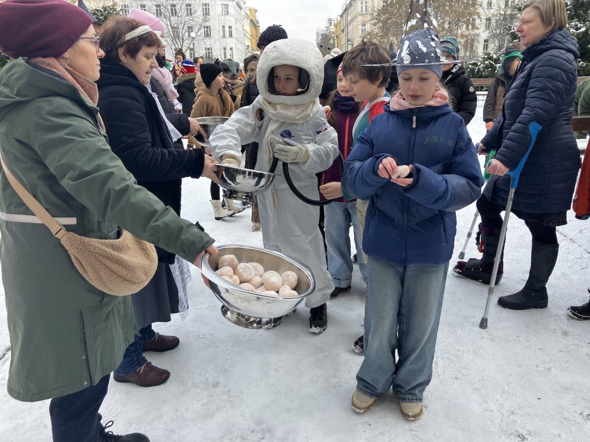 Každý, kdo dorazil v masce, se mohl těšit na zaslouženou odměnu: čerstvou a voňavou koblihu. Byla to ta nejlepší sladká tečka za celým dopolednem.