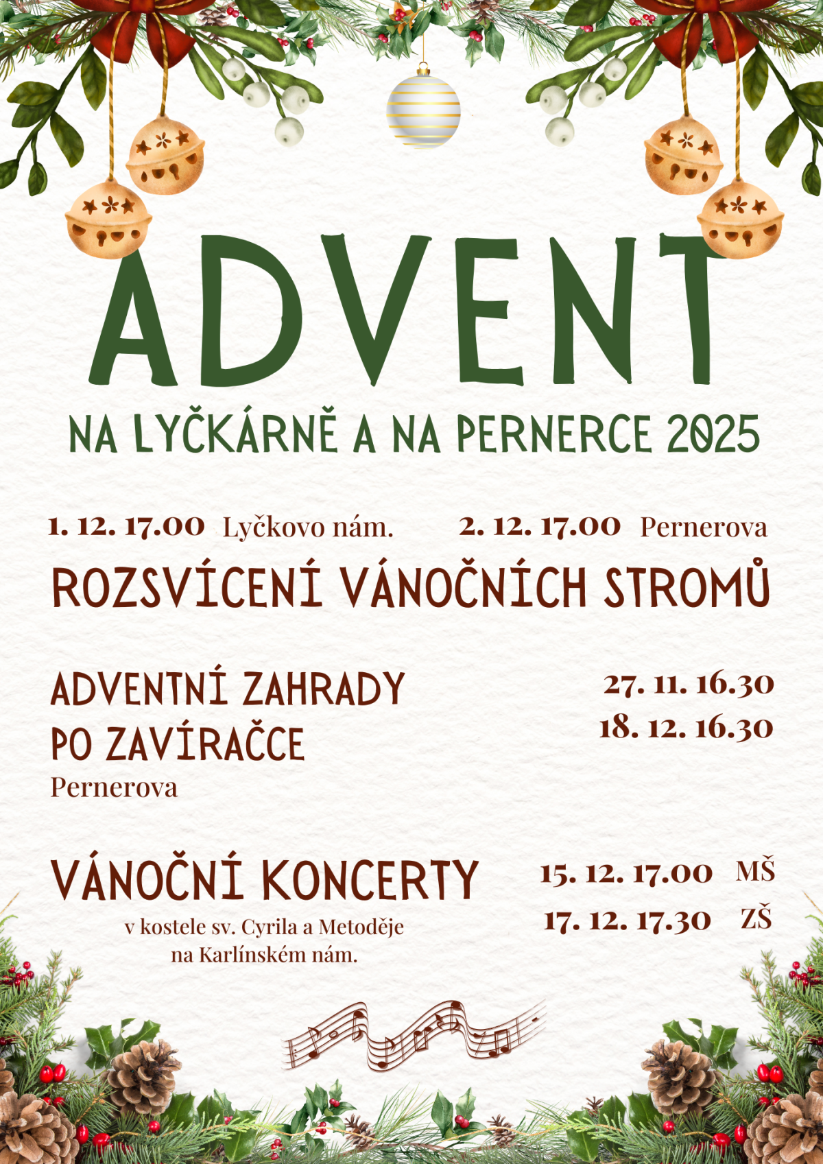 Na Pernerce se rozsvítí o den později, a to v úterý 2. 12. v 17.00. Nebude-li pršet, bude se konat na zahradě, kde bude možnost se ohřát u ohně a po slavnostním rozsvícení posedět či společně zazpívat – svařák pro dospělé i nealko pro děti připravuje spolek rodičů.